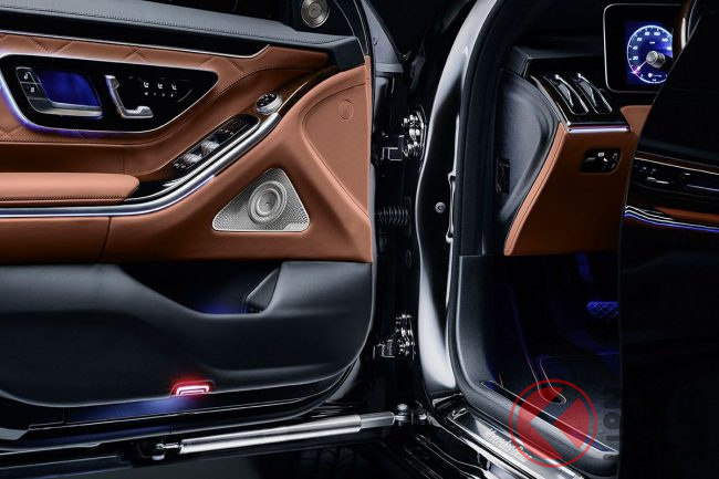新型Sクラス・ガードには、さらに自動トリガー機能付きの消火システム、また煙や毒ガスから乗員を守り、新鮮な空気を供給するエマージェンシーフレッシュエアシステムなどを用意。オプションとしてサイレンやフラッシュライトなども装備可能です。