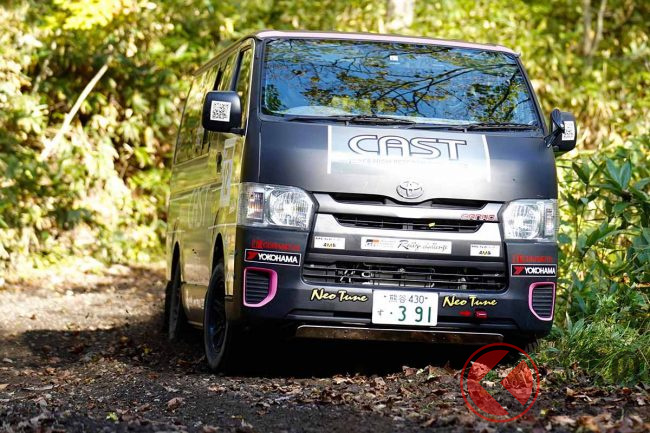 ハイエースでのラリーも同じ。「平気なんですか?」という人も、走行動画を見てもらった途端「これは凄い!」と賛同してくれる。ということで今回出場したのは、ハイエースにとって初めてのグラベル(未舗装路)ラリー。