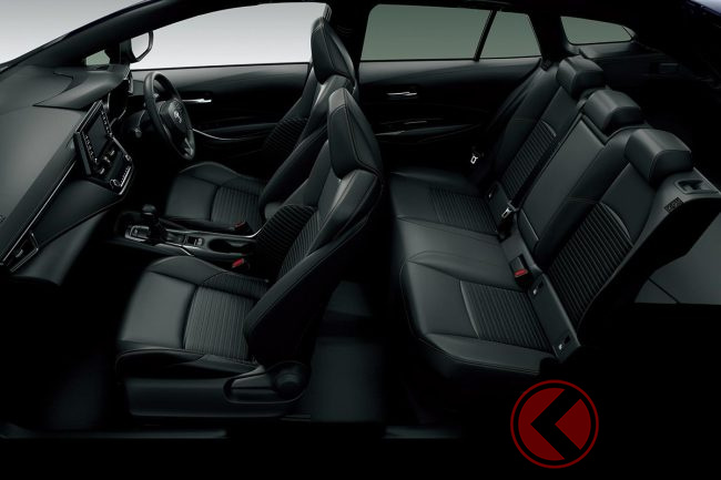 外観は「カローラスポーツ」のボディを延長したイメージのスタイリッシュなクーペフォルムで、カローラ共通の精悍はフロントフェイスに、ボディサイドのプレスラインとドア上部のラインが前方から後方に向かって上がることで、スピーディな印象です。