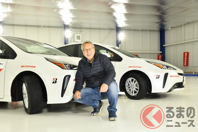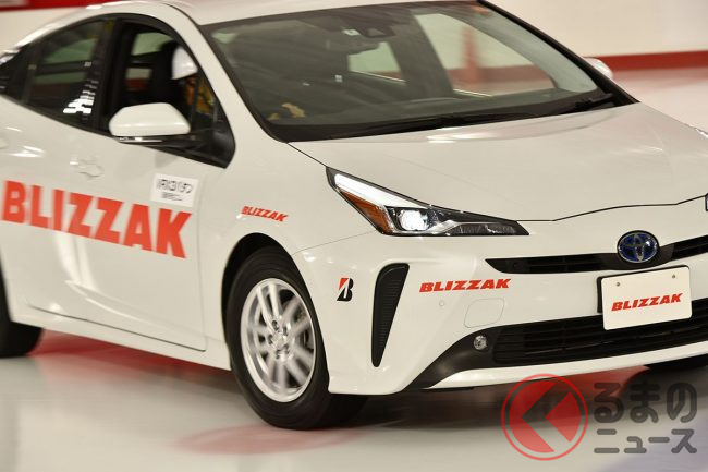 最新のプリウスに最新ブリザックVRX3を履かせたものと、1988年に登場した初代ブリザックPM20の復刻版を履かせたものという極端な比較試乗から始まりました。