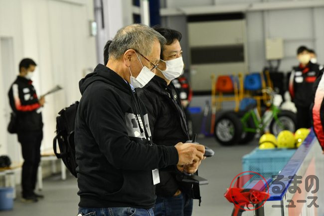 まずは初代PM20装着のプリウスで走ります。当然ながらグリップ限界が低く、アクセル、ブレーキ、ハンドルのどれを使ってもすぐに限界を超えて滑ってしまうので、とても丁寧な運転をしないと走れません。確かに昔のスタッドレスタイヤはこんな感じだったな、と思い出させてくれました。