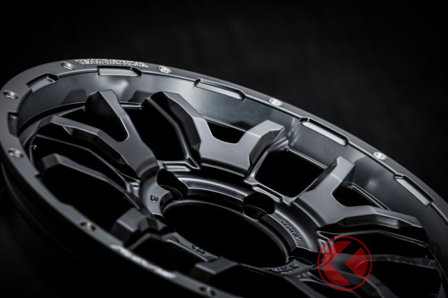 リムデザインはSUVの量感に見合う厚みをリムフランジに与え、そこにマシニングによるピアスドリルを配列。オフロード対応の強靭な設計を、見た目にも斬新かつ明瞭に表現しています。