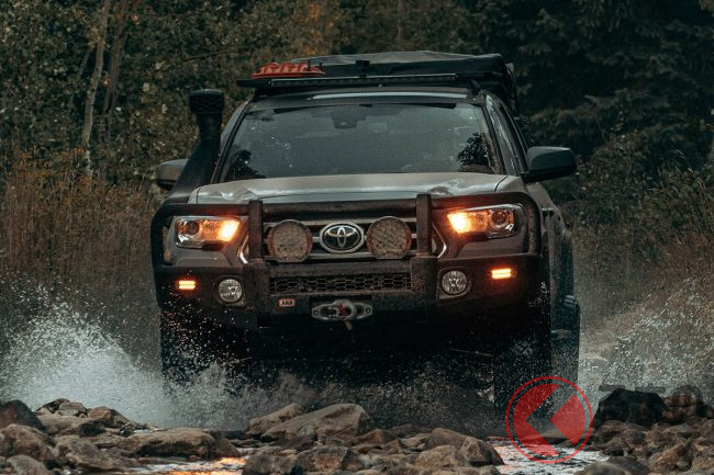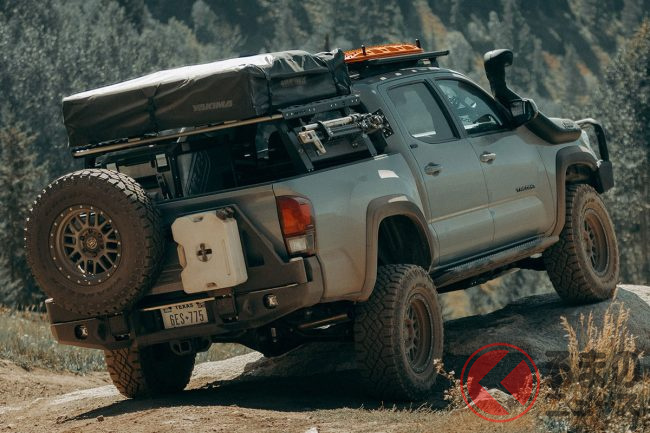 タコマ・オーバーランディング・コンセプトは、ミドルサイズピックアップトラック「タコマ」のSR5グレードをベースにカスタムしたモデルで、4WD車などのカスタムパーツを取り扱う「クルーザー・アウトフィッターズ」のオーナー兼創設者であるカート・ウィリアムズ氏と共同で製作されました。