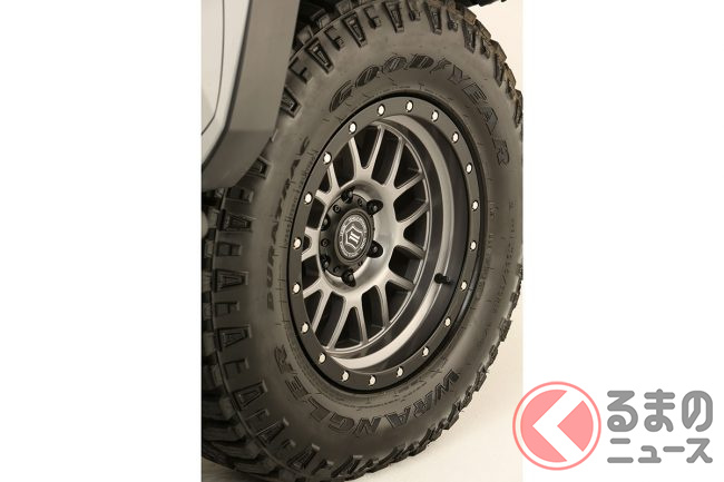 タイヤは285/70R17サイズのグッドイヤー・ラングラー・デュラトラックタイヤを装着し、ガンメタル色のIcon Alloys Alphaホイールを装着します。