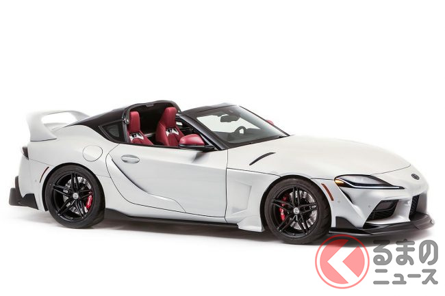 屋根がない!? オープン仕様のトヨタ「スープラ」爆誕! A80風の大型ウイング装着しSEMAで初公開