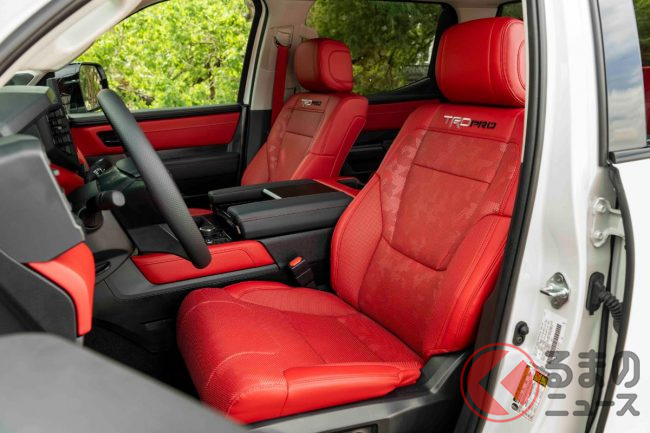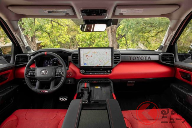 内装に関して、米国トヨタによるとほかのピックアップトラックは縦基調のデザインを採用する事例が多いものの、新型タンドラでは横基調のデザインを採用。さらに、随所にさわり心地の優れた素材を配することで高級感も高めています。