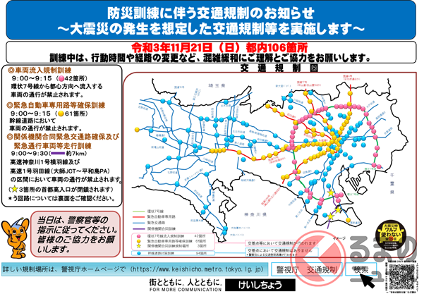 明日! 都内で大規模通行止め実施! 警視庁が大震災を想定した防災訓練を11/21に実施へ