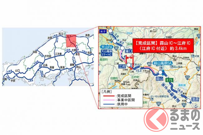 米子道の「4車線化」が進展! 江府IC付近の暫定2車線が12月解消 前後の区間も事業中