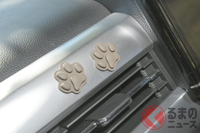 外装では肉球デザインの「ペットエンブレム」や「ペットセンターキャップ」、内装では「ペットインテリアステッカー」に「ペットセレクトノブ」といったかわいらしい商品をラインナップ。