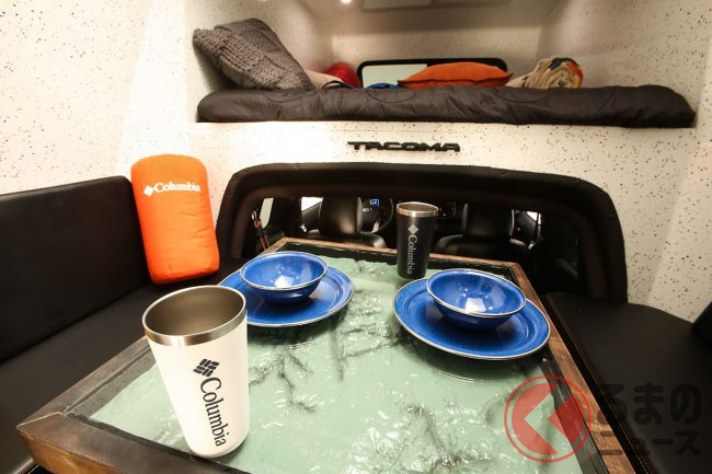 最初の「タコジラ」は、全長が5mを超えるトヨタの海外専売ピックアップトラック「タコマ」の「TRDスポーツ」仕様をベースとしたモデルで、荷台部分を寝泊まりできる空間に換装しています。