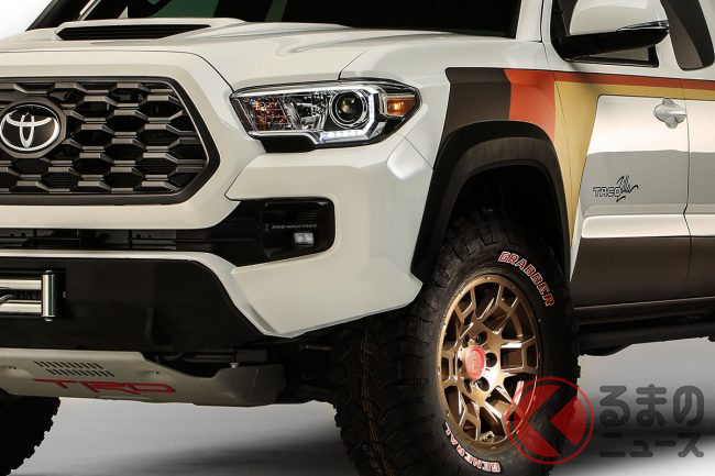 トヨタ・モータースポーツ・ガレージ・チームは、2021年12月発売の新型「タンドラTRD Pro」を改造し、純正マウントポイントを使用したTRDデザインのロングトラベルサスペンションとワイドボディキットを装着しました。