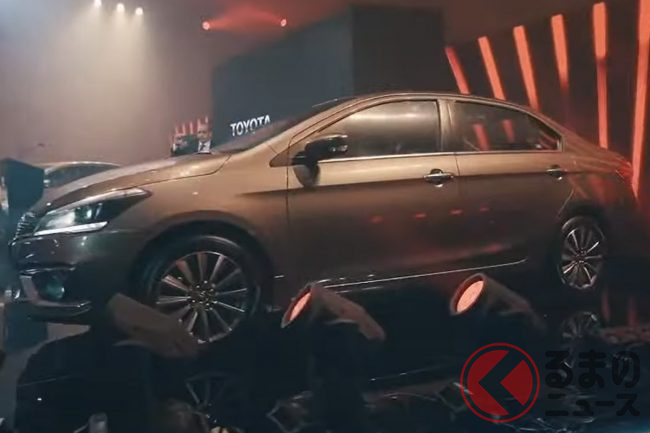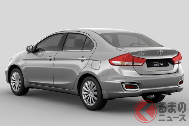 新型ベルタは、ボディサイズが全長4490mm×全幅1730mm×全高1475mm。スズキが海外で展開するセダン「シアズ」のOEM車に位置づけられます。