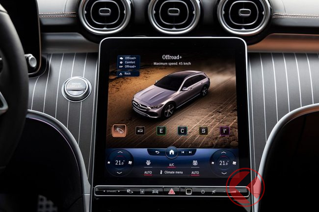 今回発売された新型Cクラス オールテレインは、このEクラス オールテレインに続く第2のモデルとなります。ベースとなるCクラス ステーションワゴンよりも約40mm車高をアップ、グランドクリアランス(最低地上高)を向上するとともに4マティック(4WD)を標準装備し、さらに大径ホイールを採用することで、オフロードなどでの軽快な走行を可能にしています。またふたつのオフロード走行モードも備えています。