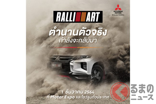 三菱のタイ法人は、2021年12月1日にラリーアート仕様の新型車を「モーターエキスポ2021」(バンコク)で発表することを、SNS上で明らかにしました。ラリーアートが11年ぶりに復活します。