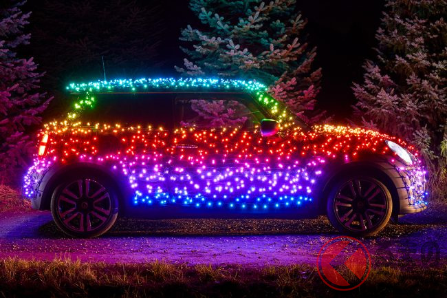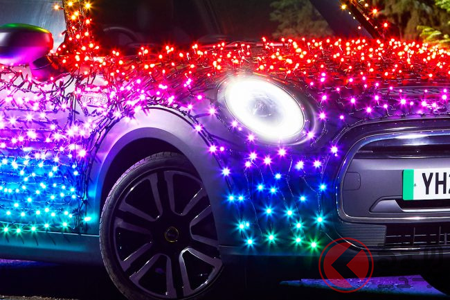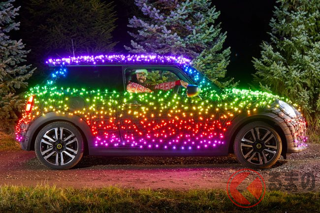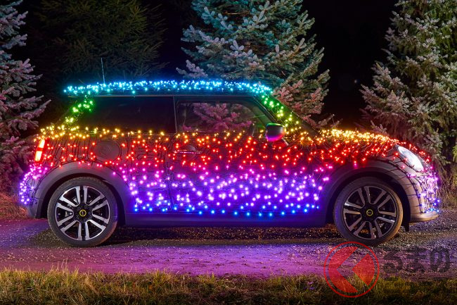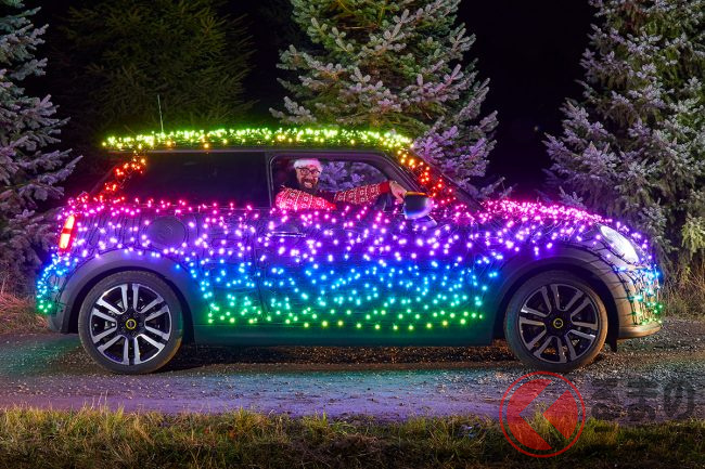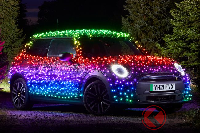 ド派手すぎる虹色電飾の「MINI」爆誕! 思わず振り返る最強クリスマス仕様 LED何千個で実現した?