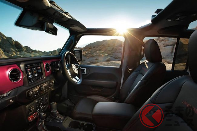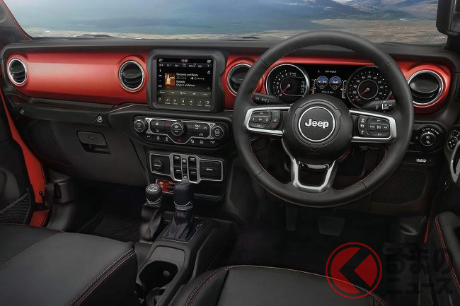 また、日本に導入されるモデルは最高のオフロード性能を誇る「ルビコン」仕様で、前後デフロックや悪路走行時にサスペンションストローク量を増加させる電子制御式「フロント・スウェイバー・ディスコネクトシステム」、極低速走行を可能にする専用ローギア付「ロックトラックフルタイム4×4システム」、マッド・テレインタイヤなど走破性を向上させる数々の専用装備を備えています。