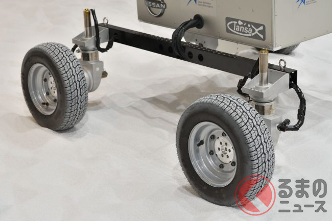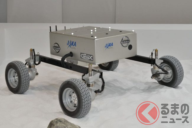 日産は、2021年12月2日に国立研究開発法人宇宙航空研究開発機構(以下:JAXA)と共同研究をおこなっている「月面ローバ(探査車)」の試作機を公開しました。