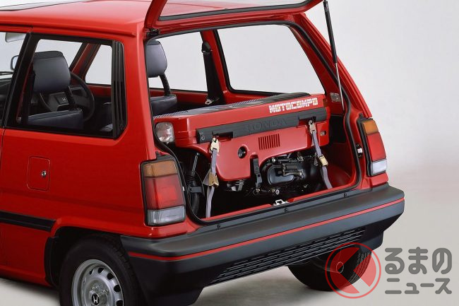 さらに広い室内による積載性の高さをアピールするために、シティのトランクに格納可能な原付バイクの「モトコンポ」を同時発売しました。