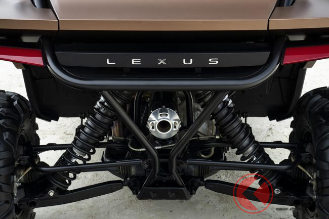 外観は、レクサスの特徴であるスピンドルグリルや堅牢なフロントウイング、プロテクションケージ、太いオフロードタイヤを装備。