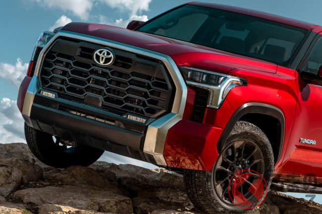 新型タンドラのデザインは、フロント部分に大型グリルとLEDヘッドライトを採用することで、先代よりもタフな印象を与えました。