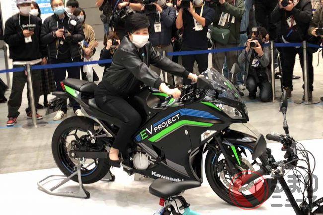 開催初日には小池百合子都知事が来場。二輪メーカーのブースを訪問して各社の技術担当者らから説明を受けました。