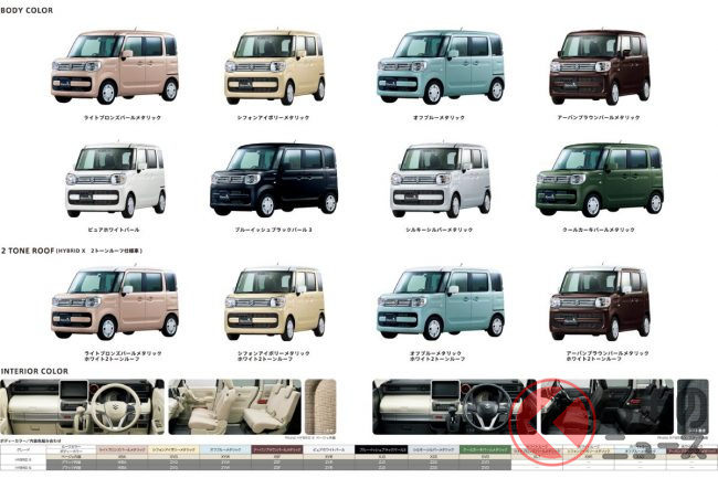 今回の一部改良では、スペーシア(標準車)もフロングリルの意匠変更を受けたほか、スペーシアカスタムとスペーシアギアはインパネカラーパネルやシートのアクセント色を変更。スペーシアギアでは、アルミホイールの意匠変更もおこなわれています。