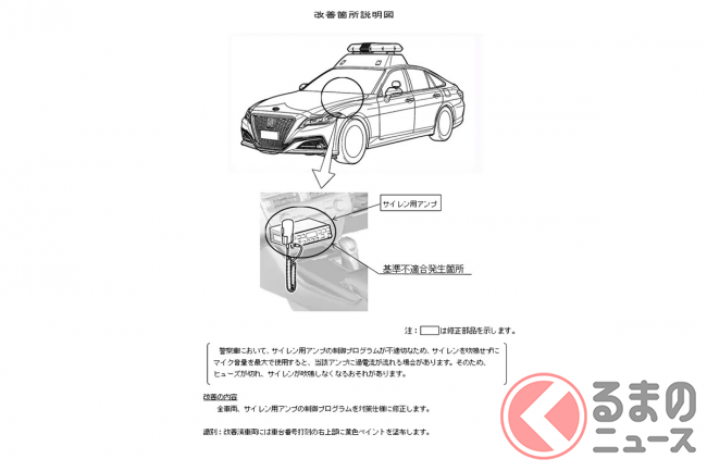 トヨタ「クラウンパトカー」のサイレンが鳴らない!? 一部車両をトヨタがリコール