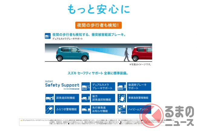 ガラスエリアが拡大され視界が広がったうえに、「スズキセーフティサポート」が全車種標準装備されたことで安全性も確保されています。