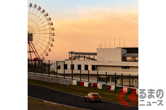 逆L字型に光るLEDデイライトを点灯させたままピットに佇む姿や、コースの走行シーンとして鈴鹿サーキット内の観覧車とともに写った画像も披露されています。