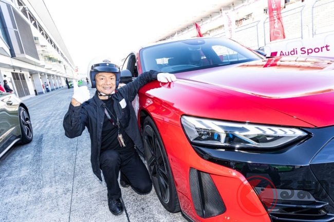 e-tron GTが出てから、すでにいろいろなシーンを走らせる機会があり、感心してきましたが、今回サーキットを全開で走らせて、あらためてとてつもないEVであることを思い知った次第です。