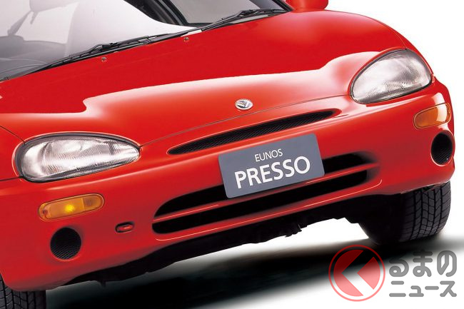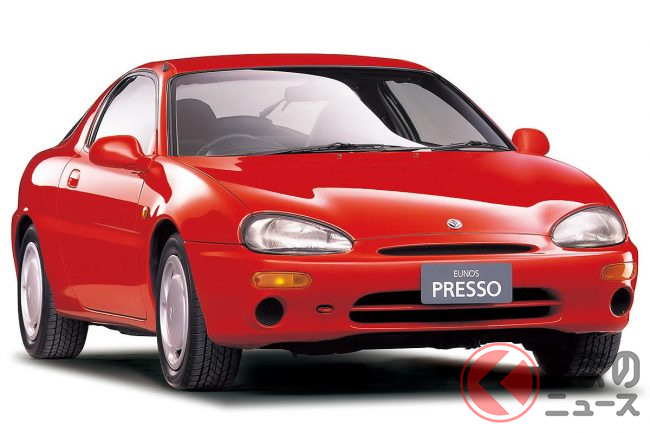 マツダはバブル期に、販売チャネルを5つまで拡大し、そのひとつ「ユーノス」ブランドから1991年に、コンパクトな3ドアハッチバッククーペ「プレッソ」を発売しました。