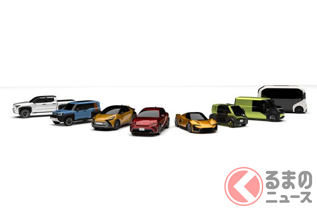 さらに、「トヨタ・ライフスタイル・BEV」として、バンタイプやピックアップ、クロスオーバーなどのモデル7種類をお披露目し、「これこそがトヨタのさまざまなBEVです」と説明しました。