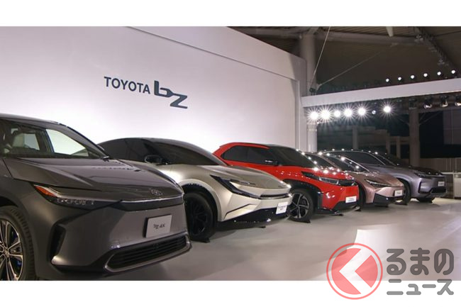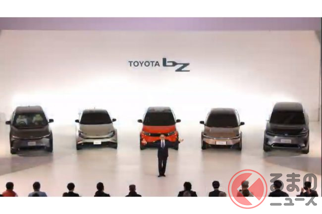 説明会ではトヨタの豊田章男社長が自社のEVシリーズ「bZシリーズ」の新モデル5車種に加え、今後EV中心に展開されていくレクサスブランドのプロトタイプ4車種を披露。