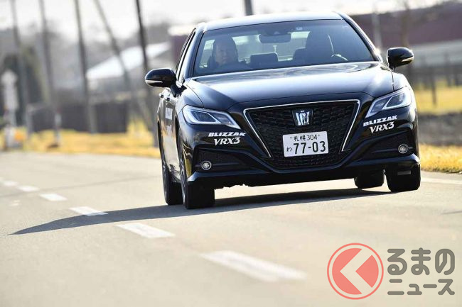 まずはブリザックVRX3を装着したトヨタ「クラウン」で試走します。タイヤサイズは215/55R17 94Qで、空気圧は240kPaでした。