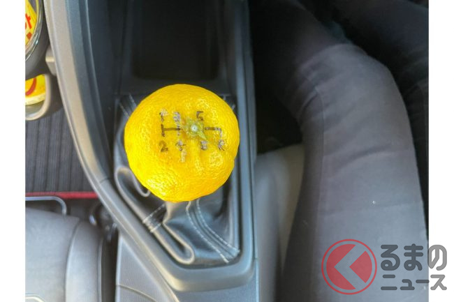 画像を見ると、ホンダ「S660」のシフトノブ部にゆずの皮が被されているほか、マジックで「1速、2速、3速、4速、5速、6速、R」とシフトパターンが書かれるなど遊び心満点です。