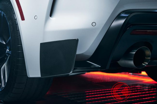 リアにもカーボンファイバー処理が施されたダックビルスポイラーと大型のカナードを装着。このエアロキットは見た目だけでなく、ダウンフォースと安定性を向上させる機能も持っており、日常のドライブからサーキットまで幅広く対応します。