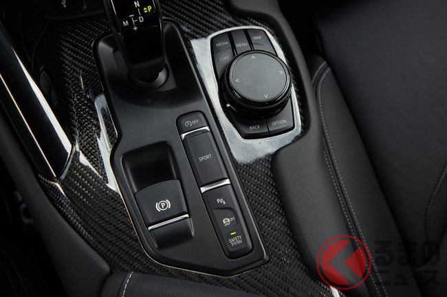 スポーツシート(14ウェイパワーアジャスタブルヒーター付)にレッドステッチを施したほか、カーボンファイバーインテリアトリムや本革巻3スポークステアリング、スポーツペダルなどを装備しています。