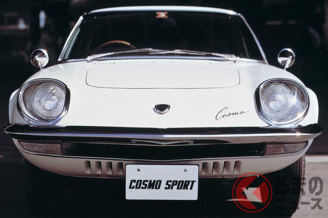 マツダは1967年に、世界初の量産ロータリーエンジン搭載車である「コスモスポーツ」を発売。