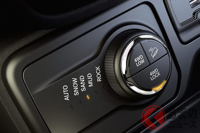 また、トレイルホークでは5つの走行モードが選択できる「セレクテレインシステム」と、スロットル、車速、ブレーキを制御して、極低速のクロール走行が可能な「Jeepアクティブドライブロー」を標準装備し、クロカン車に匹敵する悪路走破性を実現しています。