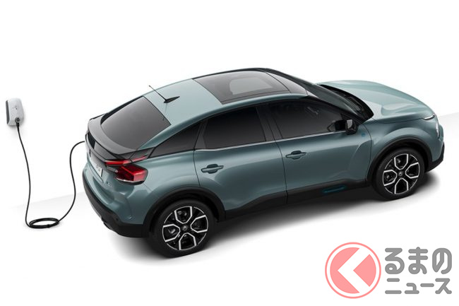E-C4エレクトリックは、シトロエン初のフルEV(BEV)で、136馬力・260Nmを発生する高効率電動モーターと50kWのリチウムイオンバッテリーを搭載。航続可能距離はWLTCモードで405kmになります。充電時間は200Vの普通充電で満充電まで約18時間(50km走行分で約3時間)、CHAdeMO規格の急速充電で80%充電時約50分となっています。