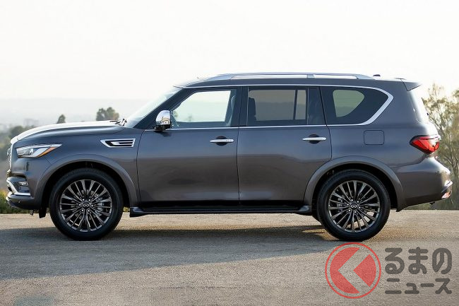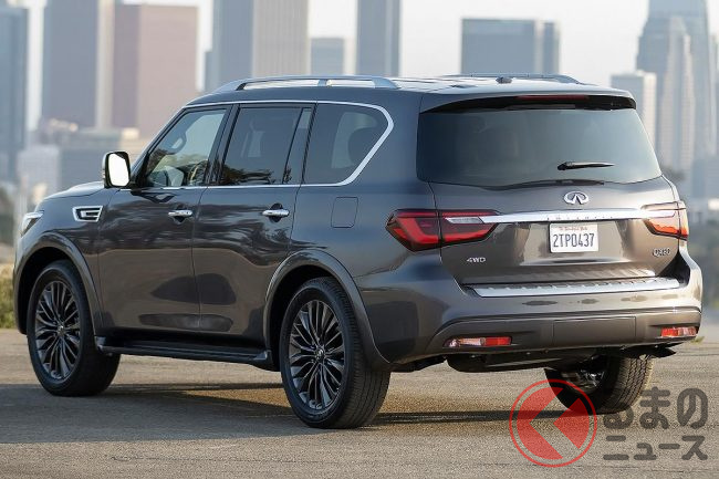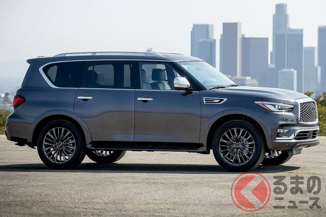 新型LXと同じく、高いオフロード性能を誇る高級SUVがインフィニティ「QX80」です。ベースが日産ブランドのフラッグシップSUVである「パトロール」(北米市場などでは「アルマーダ」)という点も、新型LXと共通項があるといえるでしょう。