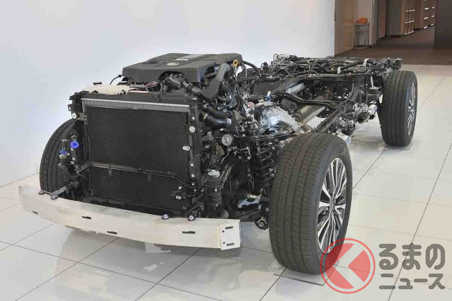 このようにいうと「新型もランクルの基本コンポーネントを使っている」と言う意見が出ます。ただ、従来モデルは「ランクルの流用」だったのに対して、新型は「ランクルの武器を活用」と、考え方が異なります。