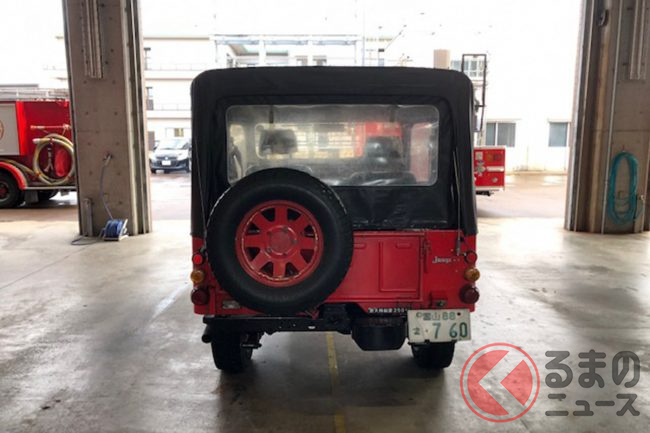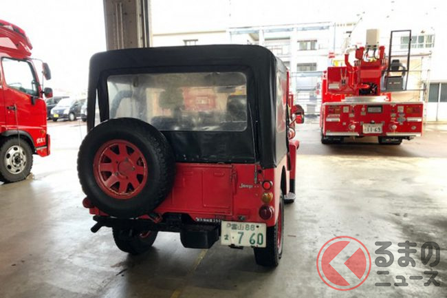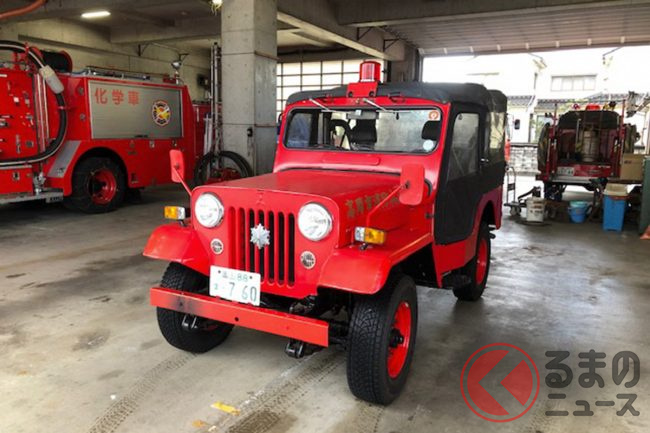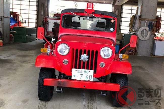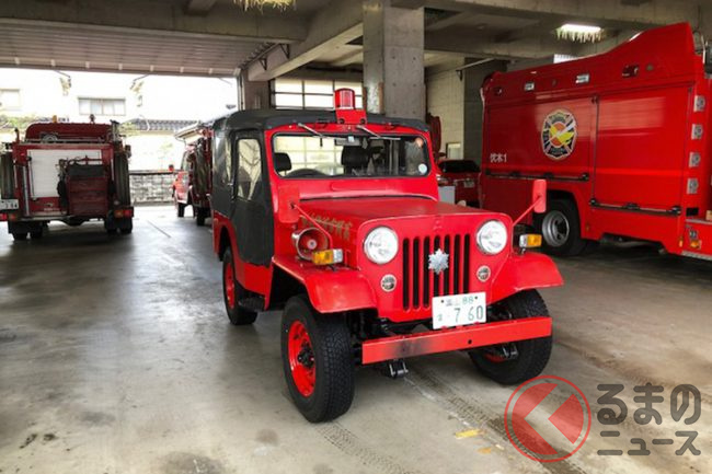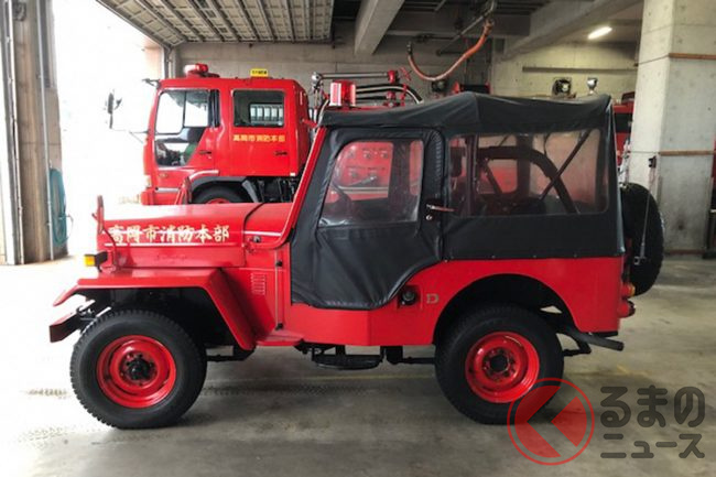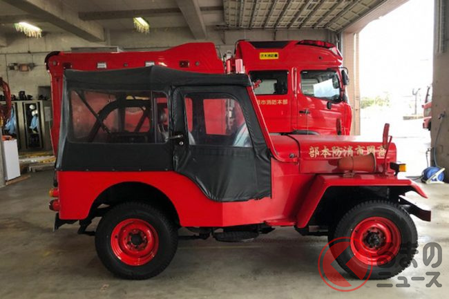 真っ赤な三菱「ジープ」がSNSで話題! 30年以上も現役で活躍する消防車の正体とは