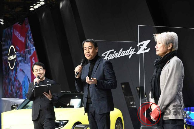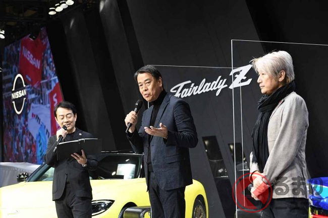 日産の内田誠社長は、新型「フェアレディZ」について「フェアレディZファンとして、今日ついにこの新型フェアレディZをお披露目できるということを、本当に嬉しく思います」とコメントしています。