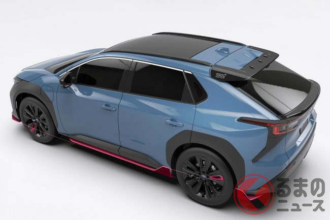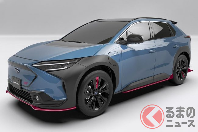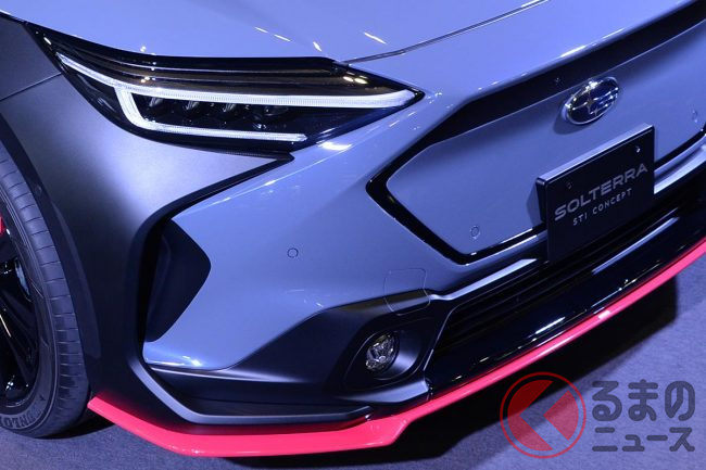 スバル新型SUV「ソルテラSTIコンセプト」世界初公開! チェリーレッドのエアロが刺激的な走り系EV登場!