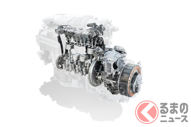 エンジン出力は94馬力・148Nm。これにEモーターの36kW・205Nm、HSGの15kW・50Nmが加わります。