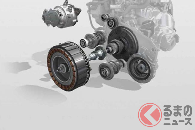燃費がよくドライブフィールに優れたハイブリッド車を実現するためには、エンジンとモーターをつなぐトランスミッションを軽量・コンパクトなものとするのが鍵だといいます。それに活用されたのが、ルノー/アルピーヌが長年にわたり参戦し、多くの経験とノウハウを持つF1の技術。F1のトランスミッションと同じドッグクラッチを使用することで、一般的なクラッチやシンクロナイザーさえも省き、軽量化とコンパクト化を図ったといいます。