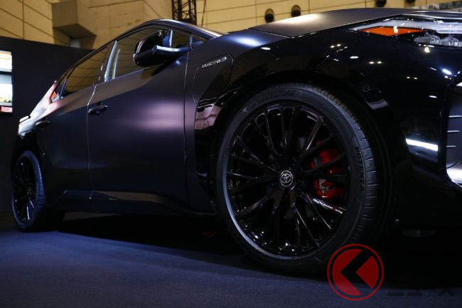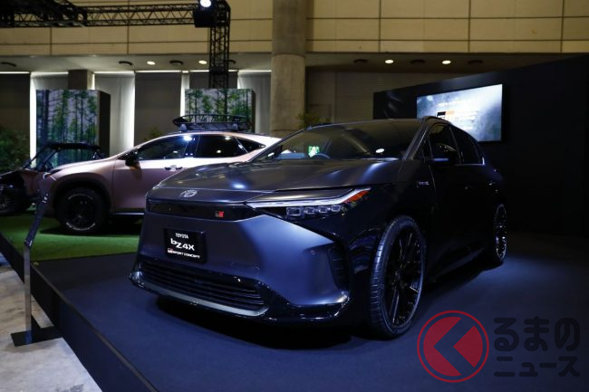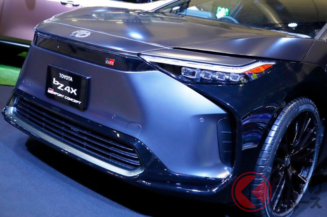 黒すぎるトヨタ新型SUV「bZ4X」世界初公開! 斬新スポーティデザインに「このまま欲しい」の声! 市販化期待のスポーティ仕様