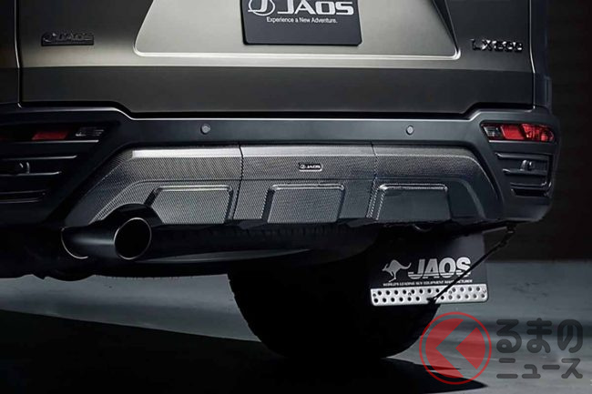 リヤバンパー下部も、さらにひと回り大きな樹脂カバーで守る「JAOSリヤスキッドプロテクター」(24万2000円)を装着しています。