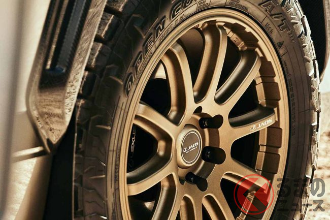 ホイールは、ジャオスとアルミホイールメーカーのENKEIが共同開発しているTRIBEシリーズの最新モデル「CROSS」をベースに、LX600やランドクルーザー専用として20インチ化した「JAOS TRIBE CROSS 20inch」(各8万1400円)を採用。